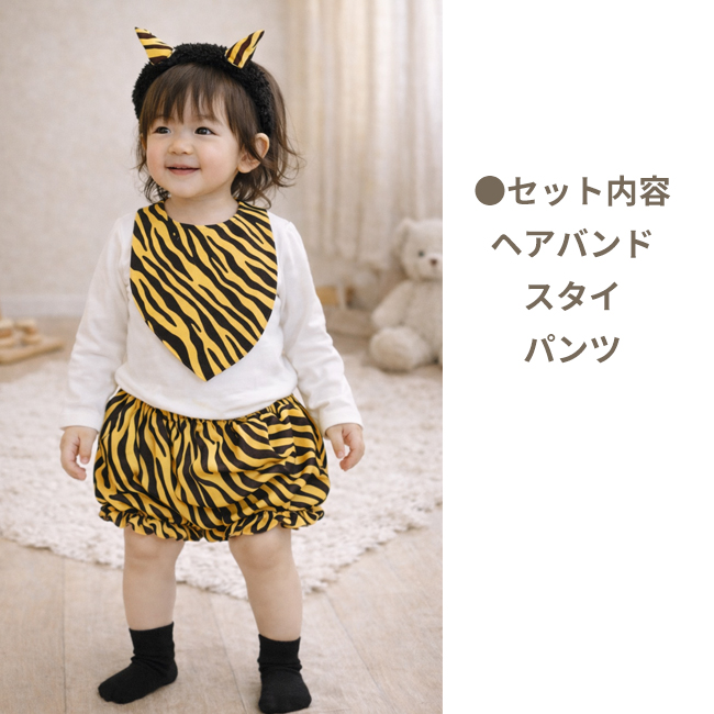 赤ちゃんも可愛く仮装できちゃう!鬼っこスタイセットです。 お手持ちの洋服に、角つきヘアバンドとパンツ、スタイを合わせれば、あっという間に可愛い鬼っ子に変身。 ヘアバンドはふわもこ素材、スタイはスナップボタン開きです。 ヘアバンドもパンツウエストもゴム仕様なので、 サイズが合えば1〜2歳位まで長く着られます。 節分のイベントやパーティー、写真撮影で可愛い鬼っ子スタイルを楽しんじゃおう♪ ●セット内容●ヘアバンド、スタイ、パンツ ※セット内容以外は商品には含まれません。 ●素材●ポリエステル100% ●サイズ● 80サイズ(1〜2歳目安) 対応身長:80〜90cm 実寸:パンツウエスト約46〜82cm、パンツ丈約24cm ※コスチュームとしてのご提供のため、着用に支障の無い程度の小さな汚れやツレが見られる場合がございます。 何卒ご了承くださいませ。