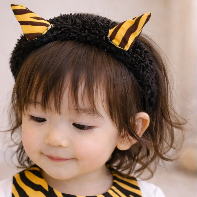 ヘアバンドはふわもこ素材、スタイはスナップボタン開きです。